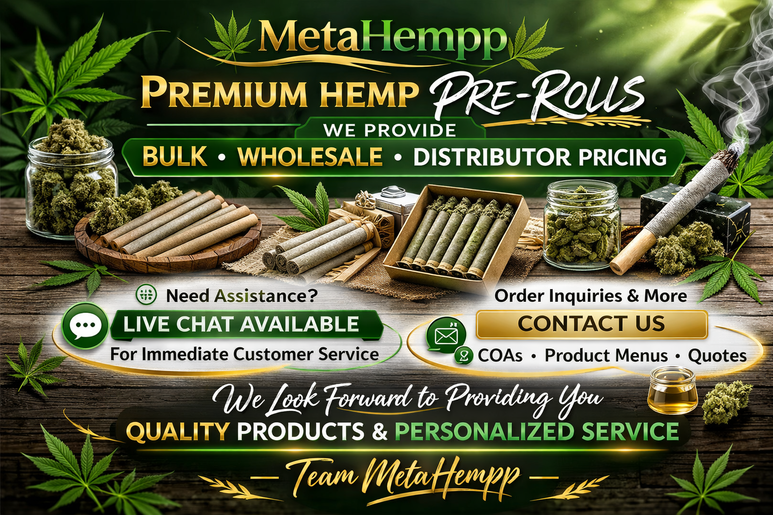 Visitors searching for hemp pre-rolls, ready-to-smoke hemp flower, and premium hemp joints online can explore a broad category through MetaHempp. Whether you are looking for lab-tested hemp flower products, appealing pre-roll options, or bulk and wholesale hemp pre-roll opportunities, this page is built to help customers discover premium selections supported by personalized service and product access.